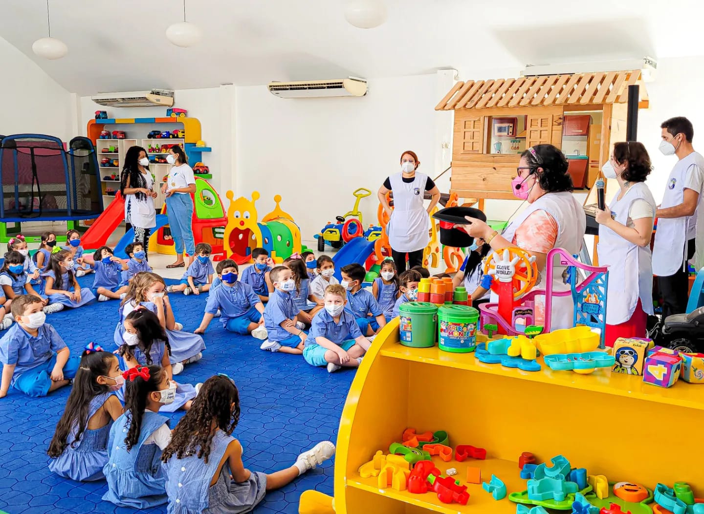 Nesse sentindo, o IDB cuida de cada espaço e pensa em todos os detalhes para possibilitar as vivências das crianças em cada campo de experiência, com a premissa de que educar é indissociável do cuidar ou como disse uma das nossas crianças "amar é fazer cuidadeza".
