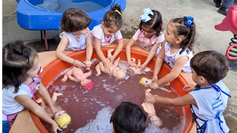 A Educação Infantil (1 a 5 anos) é o início do processo educacional. Essa etapa marca a primeira ampliação dos laços afetivos familiares ao promover a incorporação da criança em espaços mais amplos e mais complexos, a exemplo da escola. Esse contexto é fundamental para o desenvolvimento de habilidades emocionais e cognitivas que darão suporte à experiência de viver em grupos e de descobrir o mundo para além da família e da casa. As vivências dessa etapa têm como pressuposto a interação entre o brincar e o aprender sobre si, sobre a relação com os outros e sobre a natureza, com muita alegria e delicadeza, já que, para nós, educar é indissociável de cuidar – ou como disse uma das nossas crianças, “amar é fazer cuidadeza”.