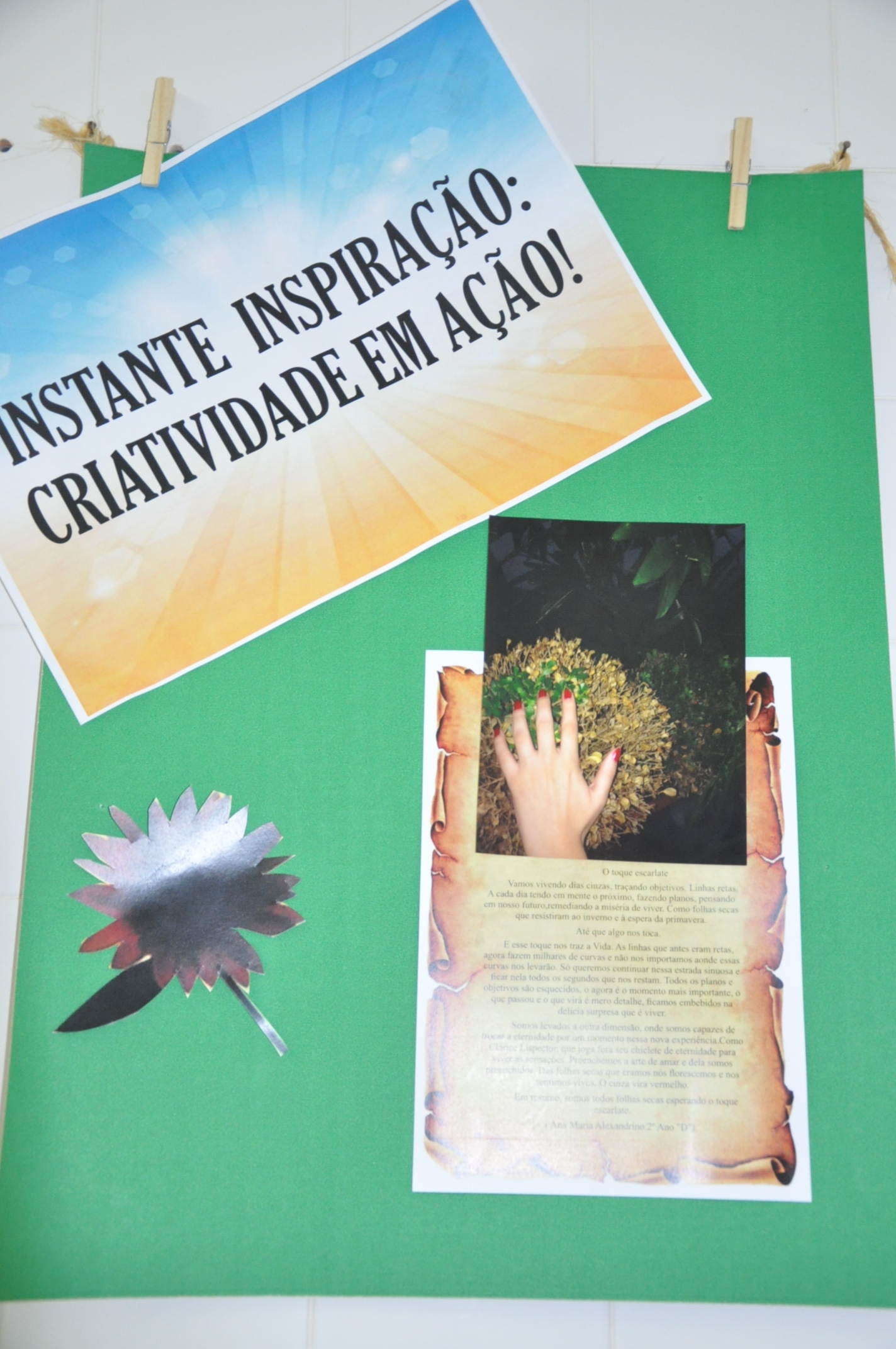 O segundo trabalho foi o das alunas da 2ª Série D, Ana Maria Alexandrino e Manoela Araújo, que retrataram na imagem o que o poeta defende nos poemas, fazendo assim uma alusão e escreveram o texto “O Toque Escarlate”.